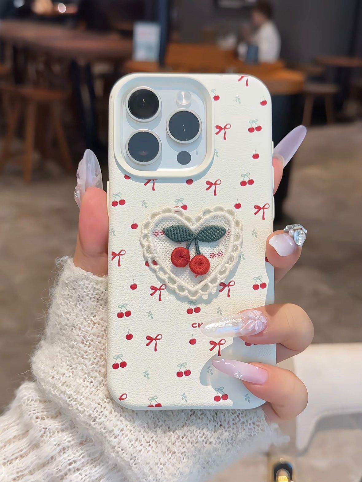 Color: litchi pattern white three-dimensional embroidery Cherry